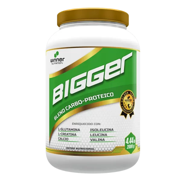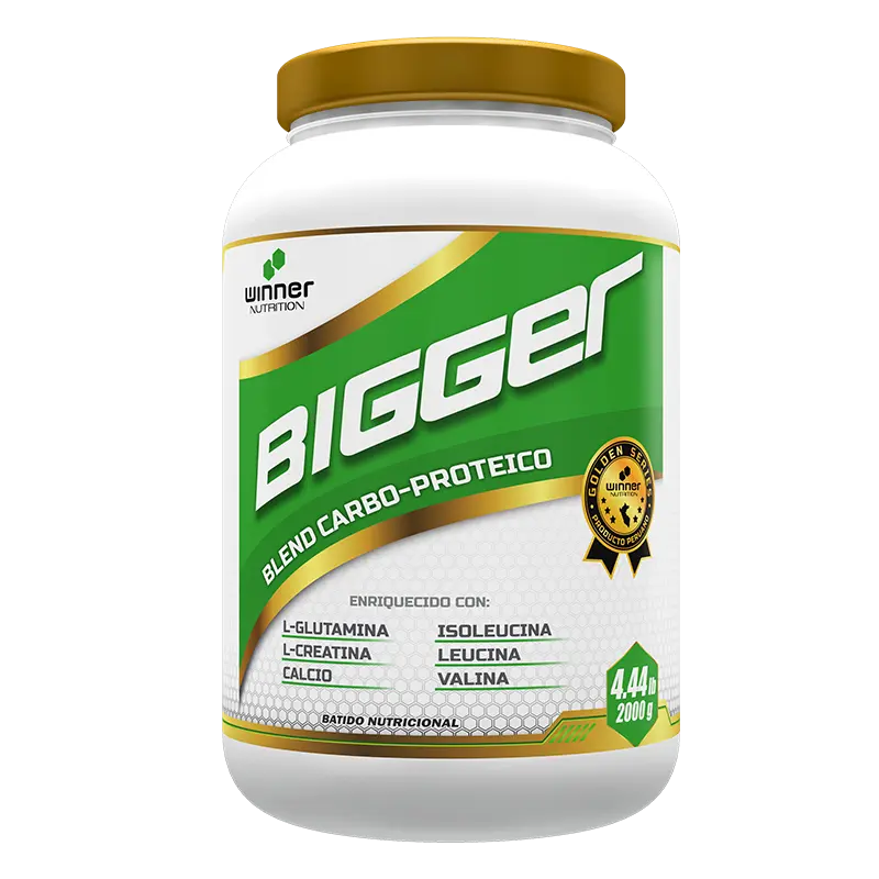 BIGGER es un producto que complementa la alimentación diaria, contiene carbohidratos y un alto porcentaje de proteínas. BIGGER dentro de su formulación contiene Suero de leche, además está enriquecido con Calcio, L-glutamina y L-creatina; también contiene aminoácidos como: Isoleucina, Leucina y Valina (BCAAs – aminoácidos de cadena ramificada). Se recomienda ejercicio físico adecuado y un régimen alimenticio equilibrado