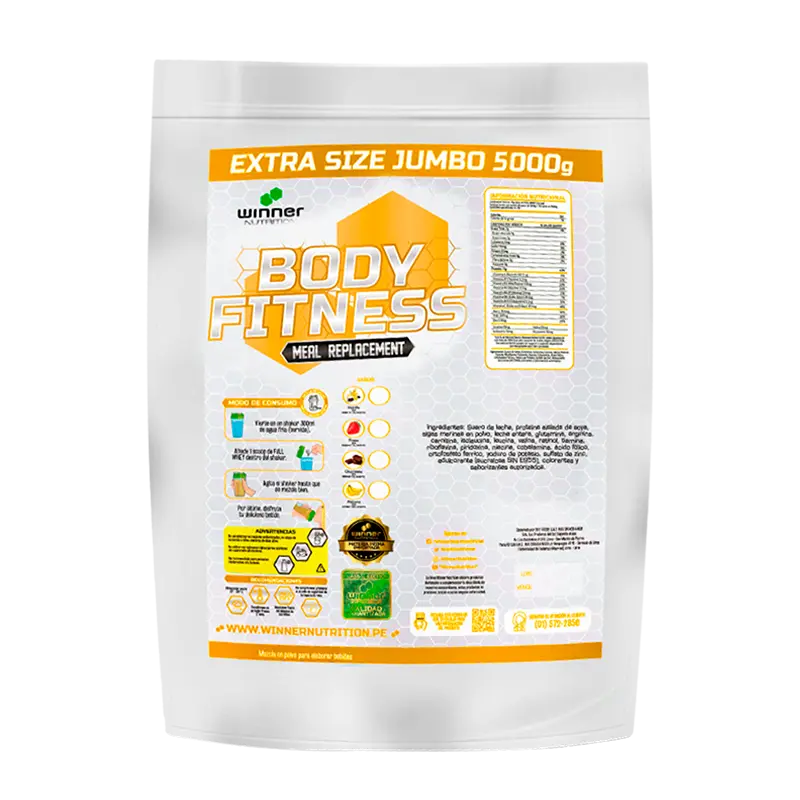 BODY FITNESS es un producto que complementa su alimentación diaria, puesto que tiene un alto porcentaje de proteínas. BODY FITNESS dentro de su formulación contiene Suero de Leche y Proteína Aislada de Soya; además esta enriquecido con L-Glutamina, L-Arginina, L-Carnitina; y Aminoácidos como: Isoleucina, Leucina y Valina (BCAAs – aminoácidos de cadena ramificada) también contiene algas marinas (Chondracanthus chamissoi) en polvo. El correcto aporte diario de vitaminas es una parte importante en la ecuación de la nutrición, siendo esenciales para el óptimo cuidado de la salud, en ese sentido, BODY FITNESS para complementar aún más este producto está enriquecido con vitaminas y minerales, entre ellas tenemos: Zinc que favorece al buen funcionamiento del sistema inmunológico. Hierro que contribuye en la formación de glóbulos rojos. Complejo B que ayuda al metabolismo, esto se traduce en una mayor absorción de los alimentos. BODY FITNESS tiene un alto contenido de estas vitaminas y minerales. Además, al ser una mezcla en polvo facilita su preparación, disolviéndola en agua puedes consumirlo a cualquier hora del día.